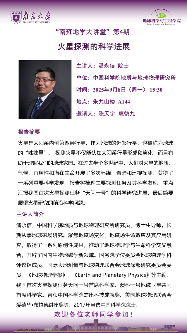 “南雍地学大讲堂”第四期——火星探测的科学进展