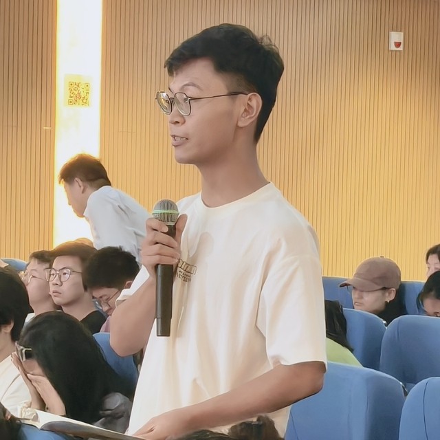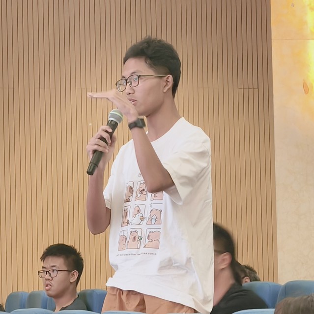 在提问互动环节,现场交流氛围热烈融洽,不同学术背景的老师和同学们积极参与讨论,刚入学的2025级本科新生也大胆提出了一些重要的科学问题,大家围绕火星探测器选址、生命探索、宜居性、磁场特性、地势二分性等核心议题,提出自身困惑与思考方向。