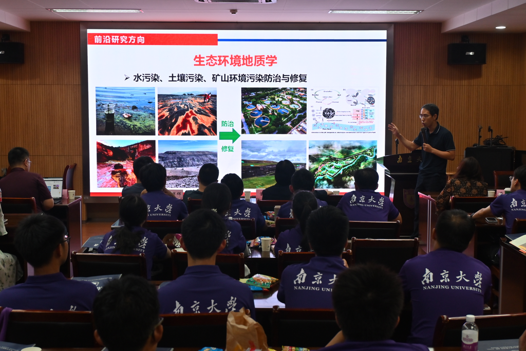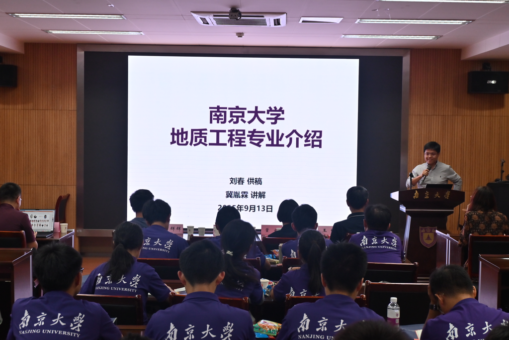 随后,各位学业导师向同学们介绍了学院不同的专业研究内容和方向。水文与水资源专业的李月婷老师对水文地质的研究方向和人才培养做了详细介绍;地质工程专业的冀胤霖老师向大家介绍了工程专业的发展前景和师资力量;地球化学方向的周斌老师为同学们详细介绍了学科历史与发展前景;行星科学方向的王涛老师通过幽默的话语简要介绍了行星科学的专业内容,并对专业同学寄以厚望;地球物理学专业的翁辉辉老师介绍了学业特色与专业优势;矿床学方向的陈晨老师就矿床学专业的特色进行了生动的介绍;岩矿方向的李军勇老师就专业师资和学科前景进行了解读。在欢乐又亲切的介绍中,各位老师表达了对地科院新一批学子殷切期望,期待同学们能够在接下来的学习中不断提升自我,探寻自我方向。