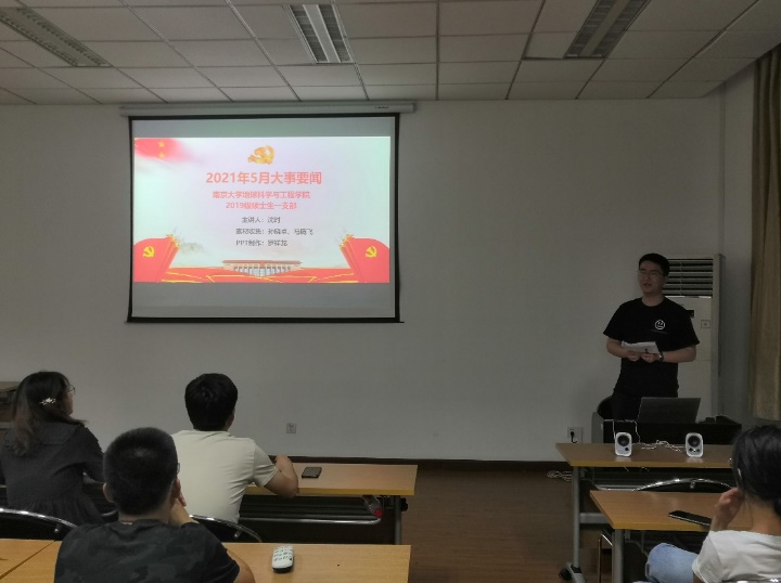 五月份国内外大事要闻分享由罗祥龙、马腾飞、孙晓卓和沈时四位党员负责,沈时作为主讲人带领支部党员共同学习和讨论。会议内容包括国内篇与国外篇: