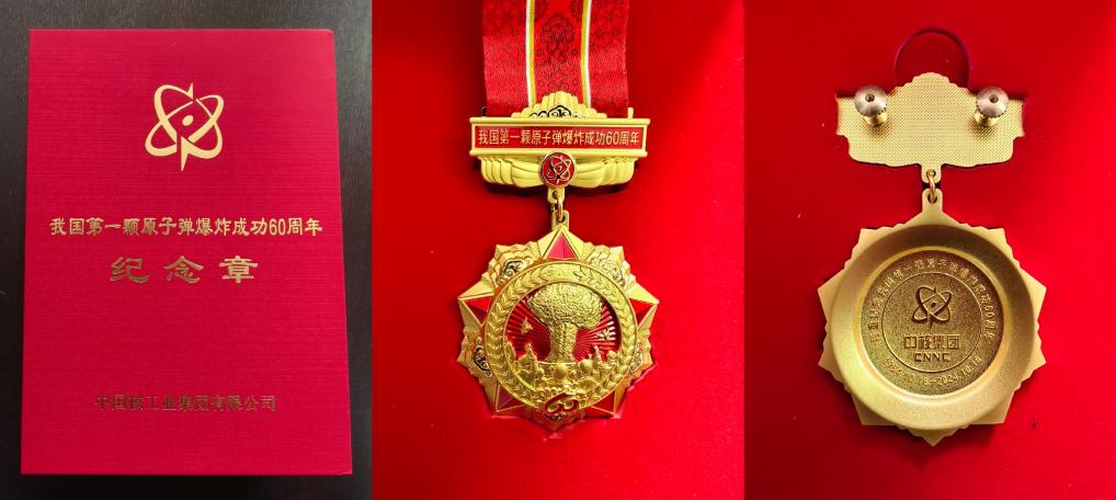 60年前,在静寂无声的罗布泊的马兰基地,一声巨响让世界震惊。历史的烟尘浩浩而来,拂过战火与疮痍,涌向东方冉冉升起的新星。60年后,当功绩化作史书的字句,一代人的努力被刻入金光熠熠的奖章,这就是“我国第一颗原子弹爆炸成功60周年”纪念章。