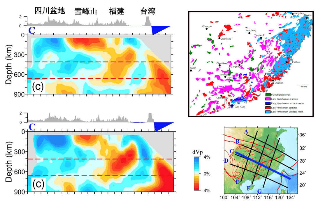 黄周传教授利用地震学方法获得了整个华南地区的上地幔速度结构,揭示了华夏块体岩石圈沿雪峰山推覆到扬子块体之上的大构造格局。