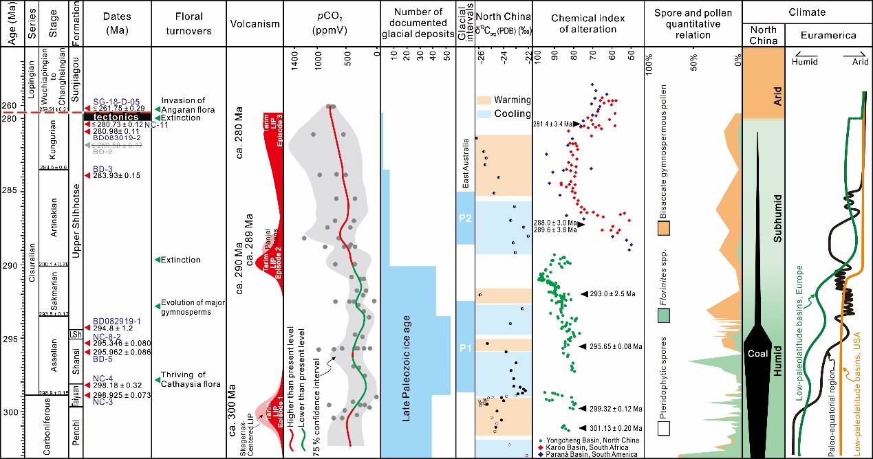 二叠纪早期大规模火山活动的时间与大气CO2浓度显著上升、晚古生代大冰期显著消退、中低纬地区气候显著干旱化的时间高度吻合。表明长期大规模的火山活动可能在晚古生代大冰期消退和中低纬气候干旱化中起重要作用。