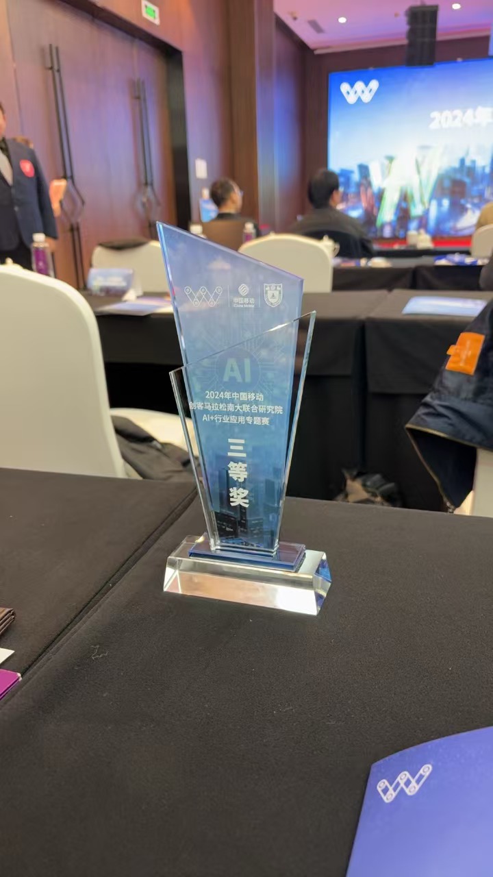 本届南大联合研究院分赛由中国移动通信集团江苏有限公司与永利304官网唯一承办,聚焦“AI+行业应用”领域,在通过发掘和培育在该领域具备硬核技术和创新潜力的人才团队和研发项目,探索AI+行业应用的新思路、新途径,推动人工智能技术与行业深度融合发展。大赛信息一经发布,吸引了来自永利304官网唯一人工智能学院、计算机学院以及智能科学与技术学院等多个相关领域院系的近50个项目踊跃报名。永利官网团队经过激烈角逐,从众多参赛项目中脱颖而出,在复赛的10个入围项目中荣获第五名的佳绩,充分展现了卓越的创新能力和团队实力。