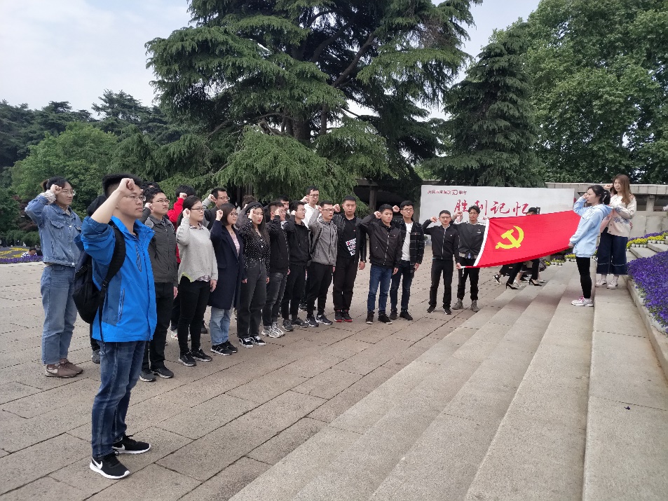 党支部的同学们佩戴着党徽,前往南京市雨花台烈士陵园参观学习,深切缅怀革命烈士,重温入党誓词。春光正好,今日的雨花台早已不见了那个年代的肃杀景象;碑文无声,眼前的纪念馆却仍向我们诉说着那些不可忘却的悲伤记忆。