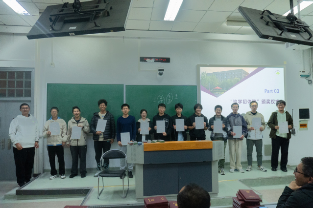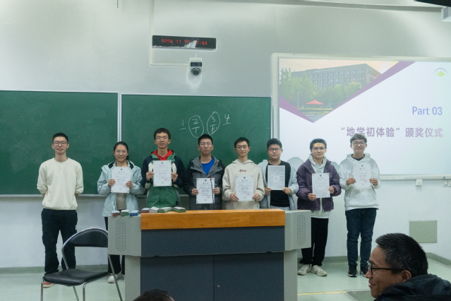 最终,综合同学们在地学初体验活动中的各方面表现,在带队老师们公正公允的评判下,地学初体验“地学新星奖”一、二、三等奖的获得者相继揭晓。在颁奖仪式上,各位老师依次为“地学新星奖”的获得者与知识竞赛的冠亚军颁奖。同学们高举奖状,带着满面笑容和老师们留下了珍贵的合影。祝贺这些同学!