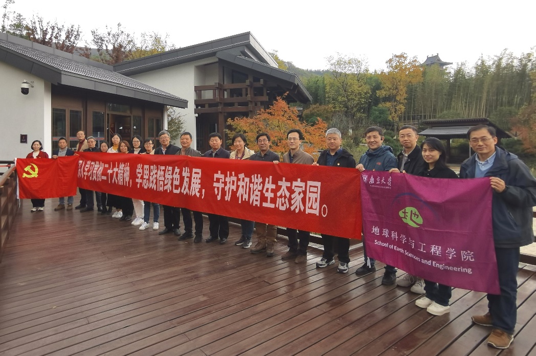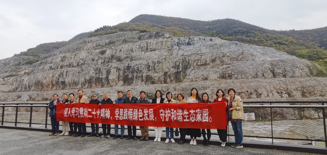 行走在园区内,党员们还饶有兴致地研究了路边自然保留的岩溶地貌和典型的灰岩缝合线,一路走,一路探寻,感受初冬午后暖意的同时欣赏园内错落有致、层林浸染的美景,身心愉悦、涤荡净化,进一步体悟到了青山绿水的生态环境造福一方的深远内涵。同时,党员们作为地质教育工作者,结合党的二十大所强调的实施科教兴国,现代化建设人才支撑,绿色发展,人与自然和谐共生的战略举措、方针,更进一步明确了新时期所肩负的使命和担当,深感责任重大,认识到必须结合自身实际,继续深刻领悟二十大精神,知行合一贯彻落实,围绕好立德树人、科技自立自强的中心工作继续努力奋进,为建设“第一个南大”贡献地科人的力量。