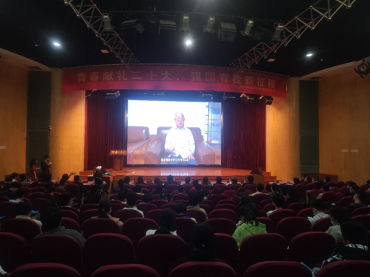 随后各位同学共同观看95岁高龄的王德滋院士给大一的同学们专门录制的寄语视频,了解到前辈们是如何进行地质实习的。王德滋院士对新同学提出的手勤、眼勤、腿勤、脑勤的要求,也让同学们对即将到来的地学初体验有了更多的期待。