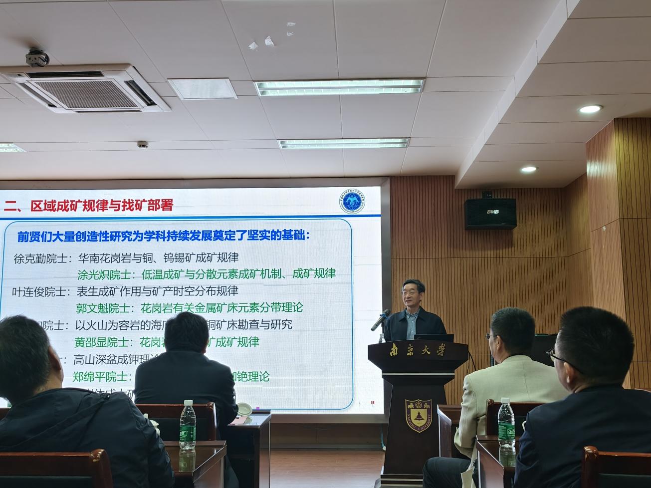 2024年11月11日,永利304官网唯一“仙林论坛”第十九期学术报告会在永利304官网唯一举行。本次学术报告邀请了中国工程院院士、自然资源部成矿作用与资源评价重点实验室主任、中国矿物岩石地球化学学会副理事长、中国地质学会矿床专业委员会主任和中国稀土学会矿产勘查专业委员会主任毛景文研究员就“我国矿床学研究进展及发展方向”为主题进行了精彩的报告。会议由永利304官网唯一副校长陆现彩致辞并主持。众多校内外师生学者参加学术报告,现场座无虚席、气氛热烈。