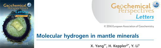 相关成果以封面文章”Molecular hydrogen in mantle minerals”发表于《Geochemical Perspective Letters》(GPL),全文链接为http://www.geochemicalperspectivesletters.org/article1616。该项工作是杨晓志教授课题组近年来在地球氧逸度和深部地球水循环方向系列工作重要成果之一,相关实验主要使用杨晓志教授在我校搭建的高温高压设备和分析测定装置以及合作者单位的部分仪器。课题组前几年相关成果已连续有多篇论文发表在Earth and Planetary Science Letters (EPSL)和Geochimica et Cosmochimica Acta (GCA)等地学顶尖期刊。研究得到了科技部973计划、基金委重大项目、基金委面上项目和中组部 等项目的资助。