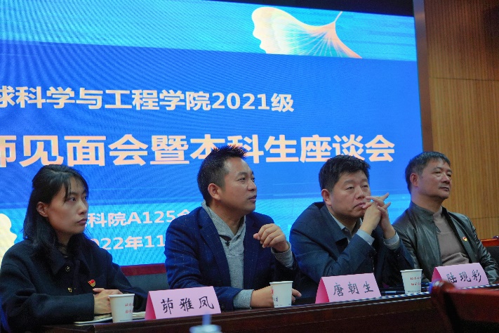 为帮助地科院2021级本科生增进对专业的了解,从而在今后的学业选择和专业选择更加的笃定和自信。11月23日中午,永利304官网唯一2021级学业导师见面会暨本科生座谈会在朱共山楼125室举行。地科院党委书记王唯,院长陆现彩,党委副书记毛予倩,副院长唐朝生,资深辅导员刘宪华,本科生教学秘书茆雅凤,以及来自不同专业的学业导师出席座谈会。2021级本科生辅导员陈昕主持本次座谈会。