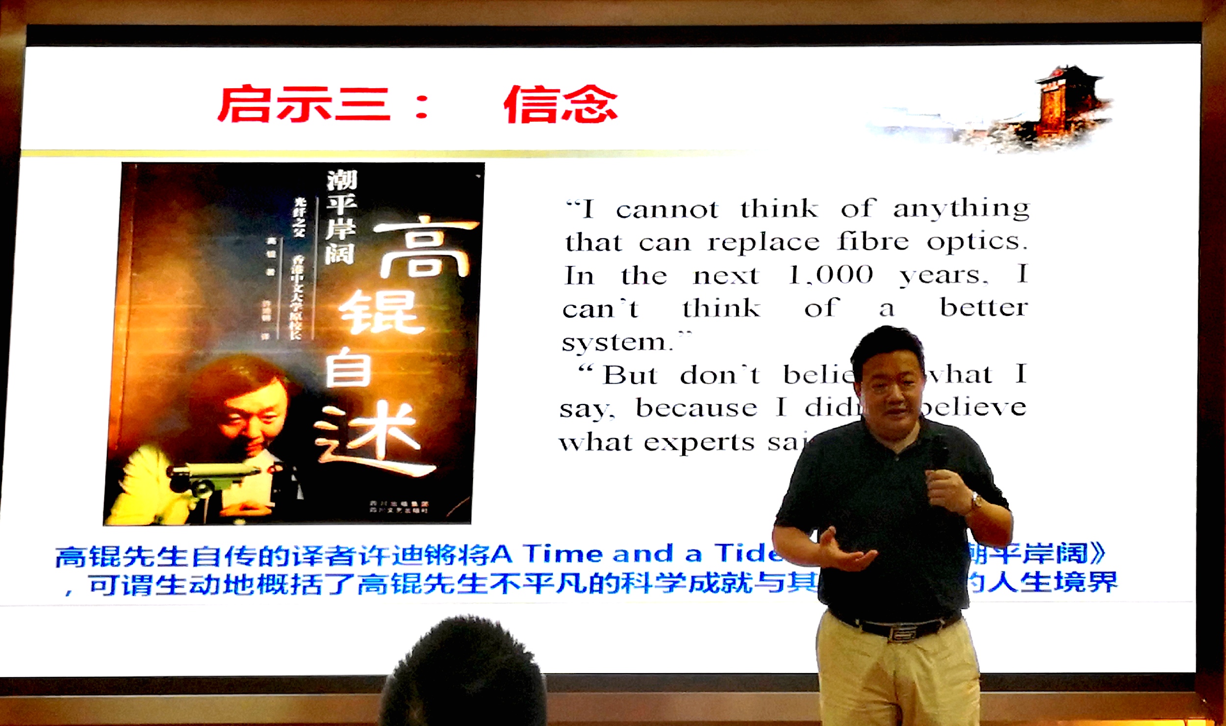 而后,施斌教授结合他的切身经历,讲解了他在光纤技术的研究过程中得到的几点启示:
