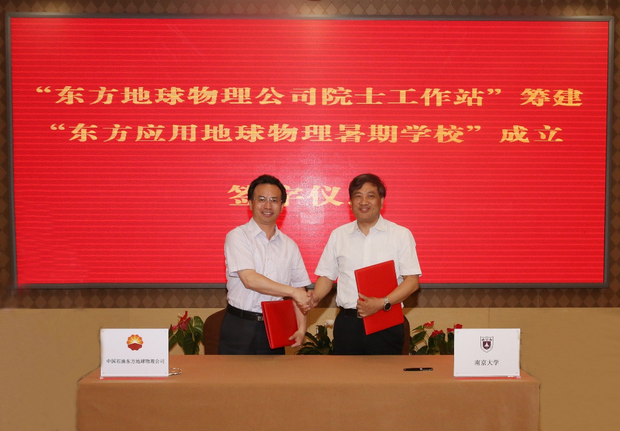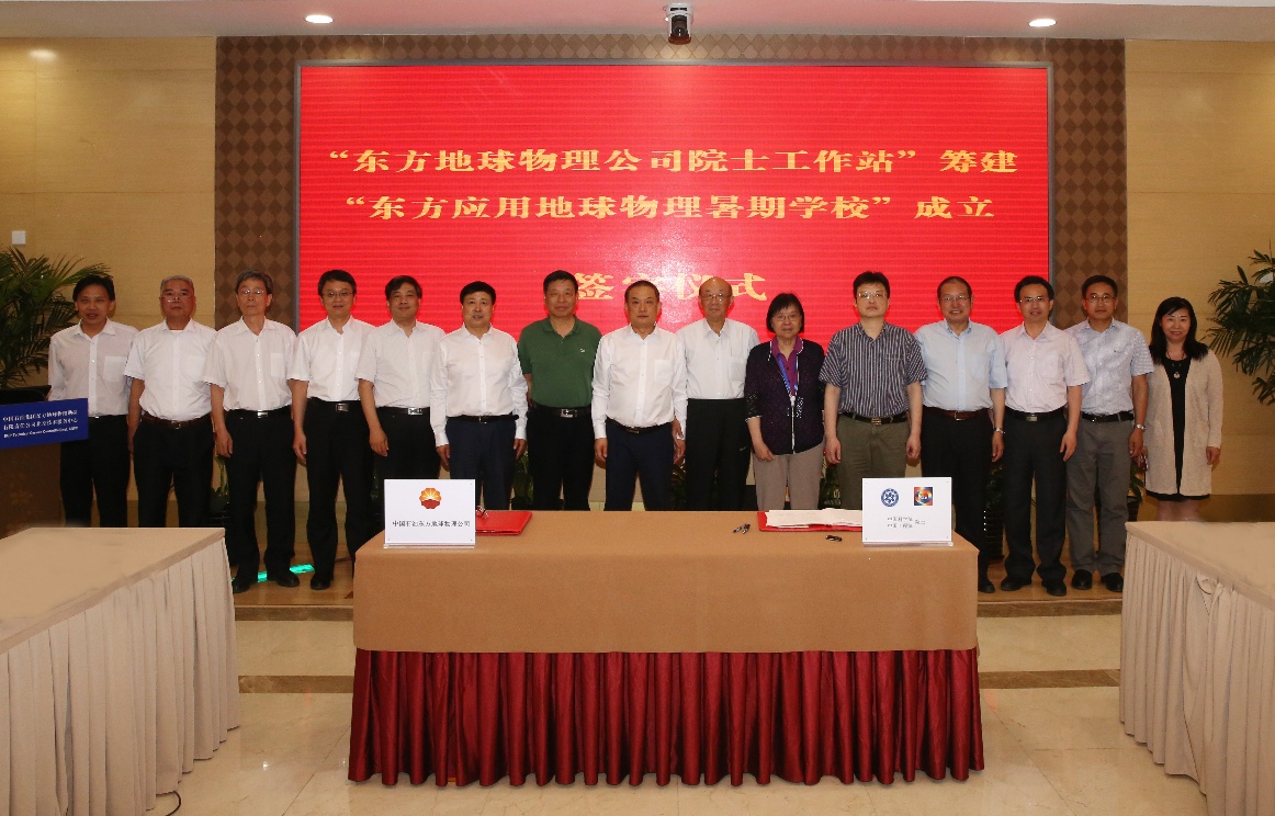 5月27日,“东方地球物理公司院士工作站”筹建暨“东方应用地球物理暑期学校”成立签字仪式在中石油东方地球物理勘探公司北京技术服务中心举行。首批拟定进站的中国科学院陈颙院士、许志琴院士、杨树锋院士、郝芳院士,中国工程院李建成院士与东方地球物理公司总经理、党委书记苟量签订了“东方地球物理公司院士工作站”筹建备忘录;永利304官网唯一地球科学院长王汝成与工程学院与东方公司总工程师张少华签订了“东方应用地球物理暑期学校”共建协议。东方物探党委副书记、工会主席王治富主持签字仪式。