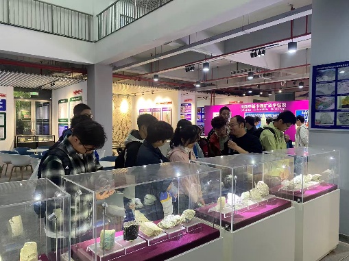 随后,师生移步至馆内其他展区。馆内保存着永利304官网唯一川西甲基卡锂矿科学钻探项目的完整岩心,并珍藏2001-2005年在苏鲁造山带实施的中国大陆科学钻探工程的超高压变质岩岩心,2008年-2014年实施的汶川地震断裂带科研项目的岩心以及其他科研项目钻探的岩心样品,以及新疆可可托海伟晶岩脉样品。