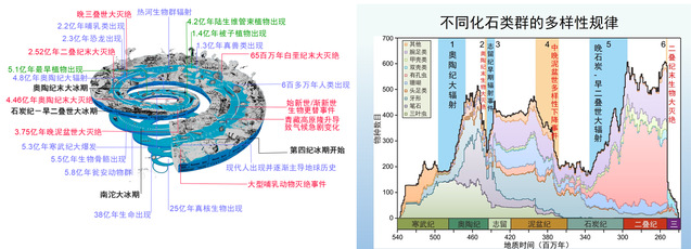 3)揭示地质历史时期生物宏演化的型式,聚焦生物演化的重大转折时期,探寻生命起源、辐射、灭绝、复苏的过程与原因,通过与其他学科的综合、交叉,重建地质历史重大转折期的海、陆生态系统的形成和转变过程。