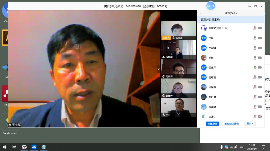 作为地科院历史上第一个线上进行的博士论文答辩会,从学院、答辩委员会,到导师和学生,都进行了认真准备,对答辩的流程和学位论文质量提出了较高的要求。答辩前一天,答辩委员会专门进行了网上答辩的流程试验。正式答辩从3月9日下午14:30开始,一直持续到18:00。答辩委员会主席永利304官网唯一王宝军教授主持答辩会,答辩委员包括永利304官网唯一朱鸿鹄教授、山东大学许振浩教授、中国矿业大学乔伟教授、河海大学卞夏教授,答辩秘书为张诚成博士,答辩监督教师为张巍副教授。此次答辩会共有身处全国各地的66名师生共同参加,永利官网负责研究生工作的王孝磊副院长也全程在线参加了此次答辩。