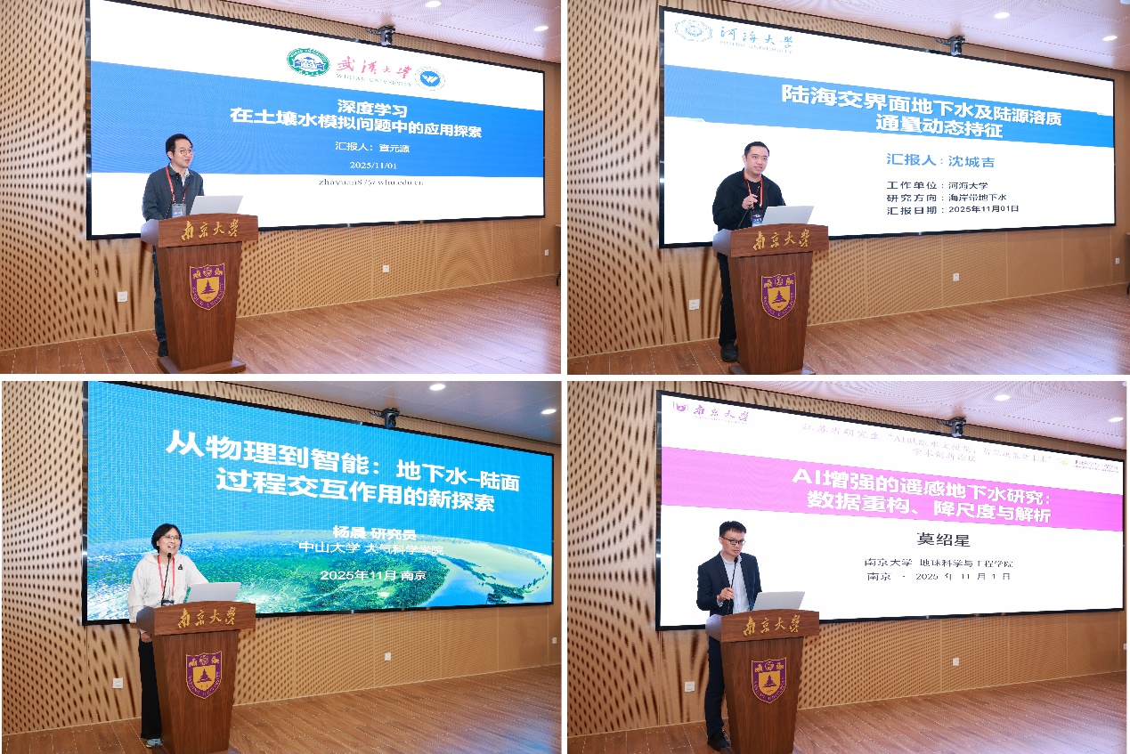 在特邀报告环节,武汉大学查元源教授介绍了深度学习在土壤水动态模拟中的应用探索;河海大学沈城吉教授分享了陆海交界带地下水及陆源溶质动态通量研究的最新成果;中山大学杨晨副教授系统阐述了从物理约束到智能化的大尺度地下水–陆面过程耦合模拟研究进展;永利304官网唯一莫绍星研究员介绍了AI赋能的遥感地下水干旱监测与水文过程解析方面的研究成果,展示了人工智能在水文过程理解、极端事件监测与预报中的应用潜力。特邀报告由施小清教授主持。