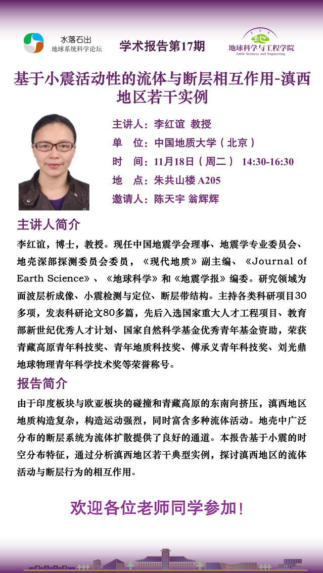 “水落石出”学术报告第十七期——基于小震活动性的流体与断层相互作用-滇西地区若干实例
