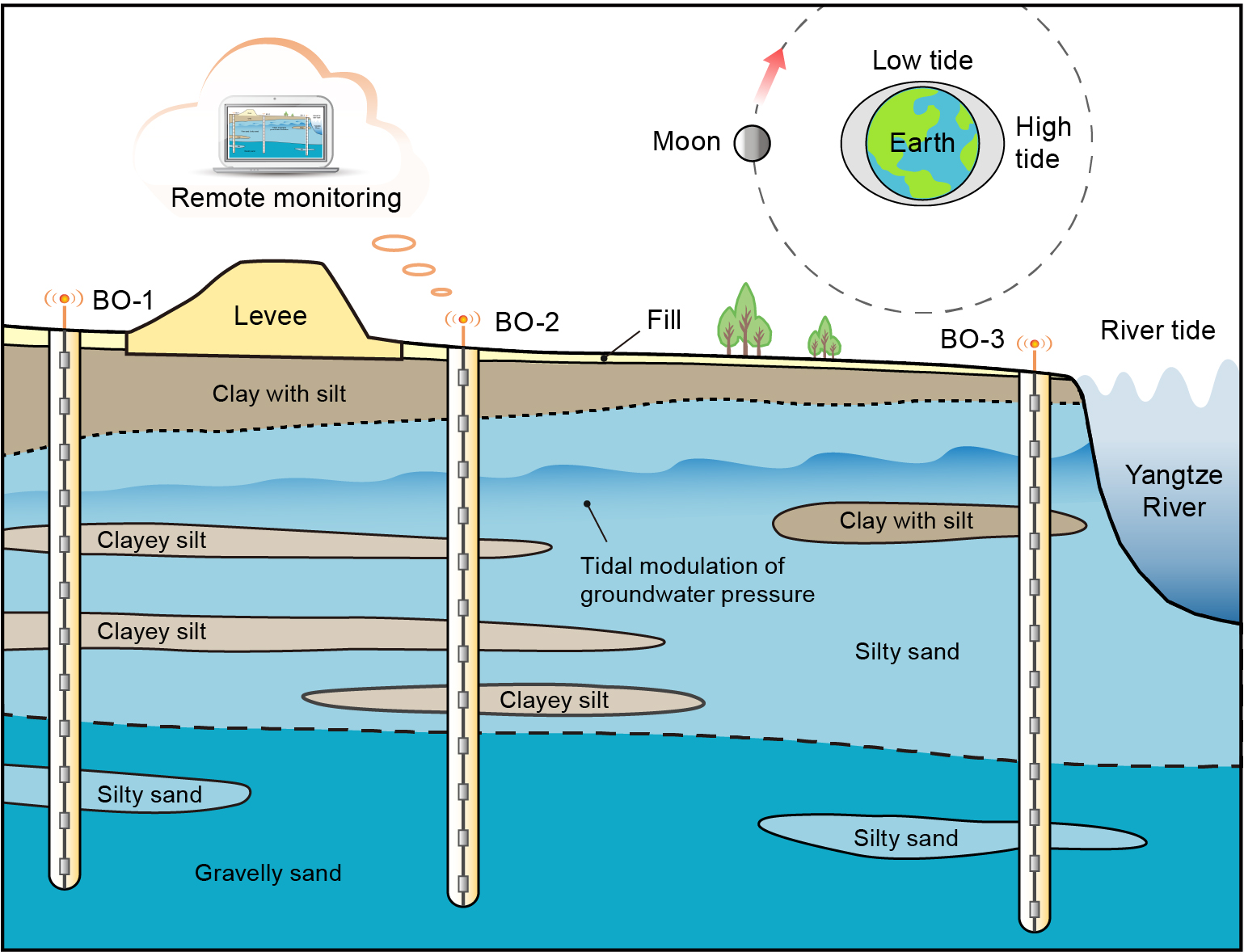 上述研究成果以“Soil stratum tides”为题近期发表于国际地学综合类顶级刊物Geophysical Research Letters,施斌、张诚成和A. J. F. Hoitink为共同通讯作者。该研究得到了国家自然科学基金重点项目、青年科学基金项目及永利304官网唯一毓秀青年学者计划等的资助。