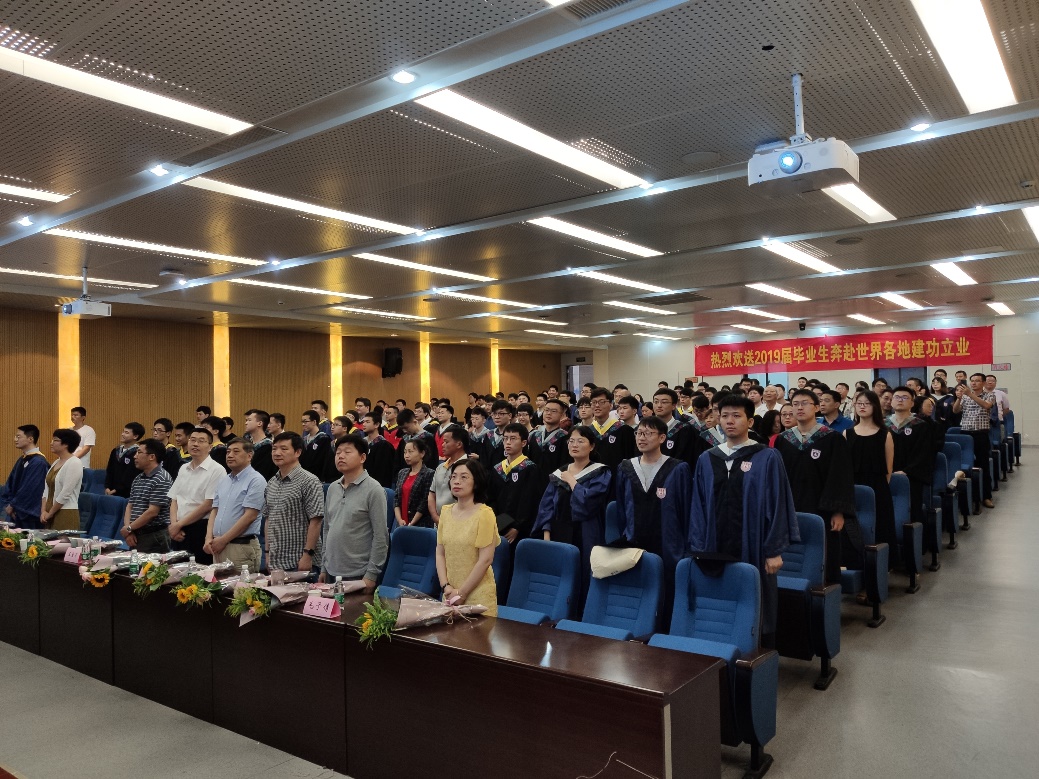 2019年6月18日上午,永利304官网唯一2019届毕业典礼在朱共山楼144报告厅隆重举行。永利304官网唯一党委书记王唯老师、院长王汝成老师、副院长陆现彩老师、王宝军老师、倪培老师,党委副书记毛予倩老师,研究生辅导员汤晓茜老师、本科生毕业班辅导员孙启程老师出席了典礼,与200多名毕业生及家长共同度过了这一难忘时刻。