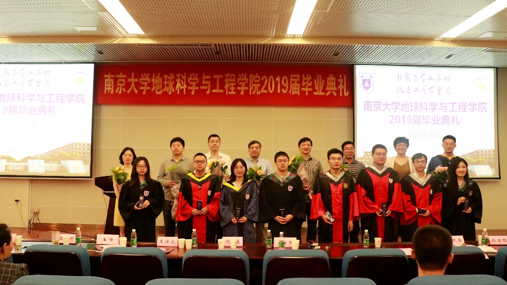 王汝成院长在致辞中首先对全体毕业生表达了衷心的祝福,对毕业生提出了三点希望。第一,毕业代表着人生的转折,这一个转折意味着对大家新的挑战和机遇,希望大家进入新的人生阶段后尽快适应新的生活;第二,希望大家在新的阶段尽快确立新的目标并为之奋斗;第三,希望每一位毕业生在今后不论是继续读书深造,还是走向工作岗位,都能为国家和社会做出自己的贡献。同时,王院长提出了南大地科院“两个一百年”的奋斗目标:到建系一百年时,南大地科成为世界一流学科;到建国一百年时,成为国际上地球科学领域有重要影响力的学科。南大地科从1921年建系,当前校友超过1万人,我们学院发展的接力棒今日交到了我们每一位南大地科人的手上,无论在大家毕业后继续在学院贡献还是成为学院的校友,都要像我们地科院院标的寓意一样,能够永远将我们地科放在心里,保持一颗强烈的个人自信心、社会责任心和爱心,时刻关注和奉献于地科的发展。
