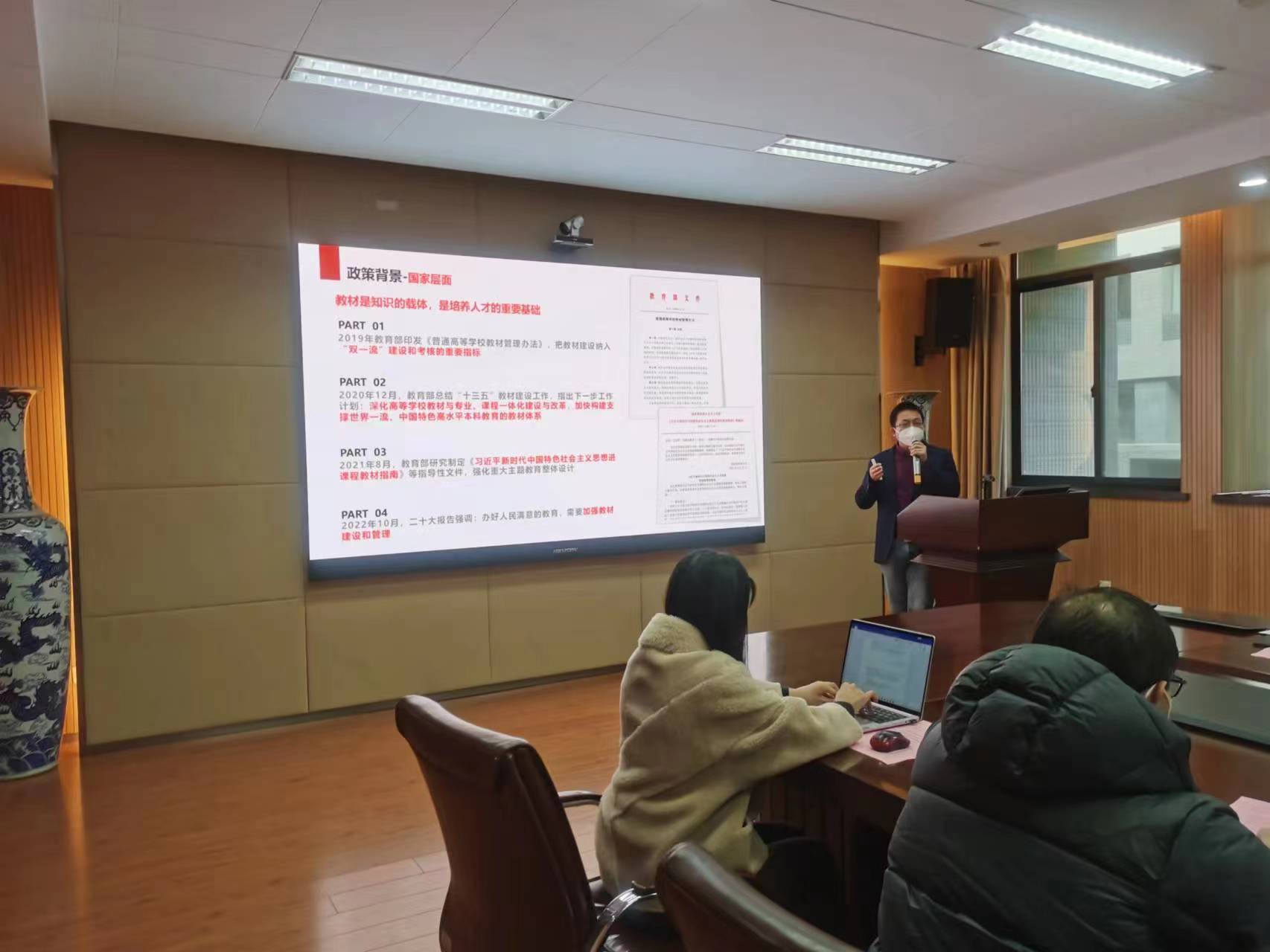 会议开始首先由施林淼主任就教材在人才培养中的作用、学校本科教材建设情况、国家、学校对教材建设的要求进行了详细解读。他对地科院率先召开全院教材建设专项工作会议予以充分肯定。并强调当前教材在教育教学中的重要性不断彰显,无论国家层面和学校都对教材工作高度重视。国家专门成立了教材建设委员会,教育部也成立了专门的教材局,近两年在教材的奖励激励及教学选用管理两个方面有很多新的政策和举措。施主任还特别介绍了全国首届优秀教材评选有关情况,肯定了地科院前期教材工作取得的重要成绩,也相信地科院在党政一把手主抓,全院教师共同努力下,在新时代教材建设中一定会再创佳绩。