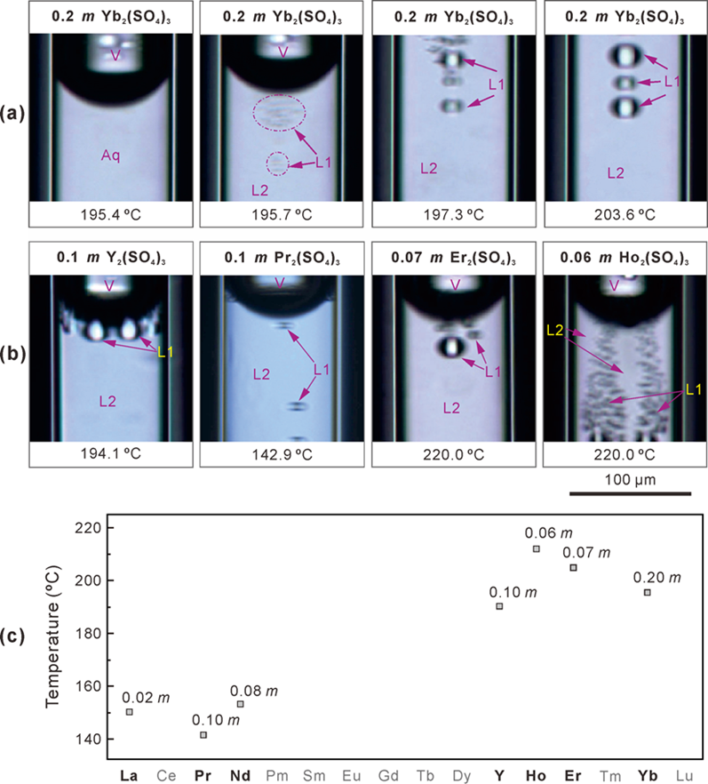图1. 含稀土硫酸盐流体中的液-液不混溶现象