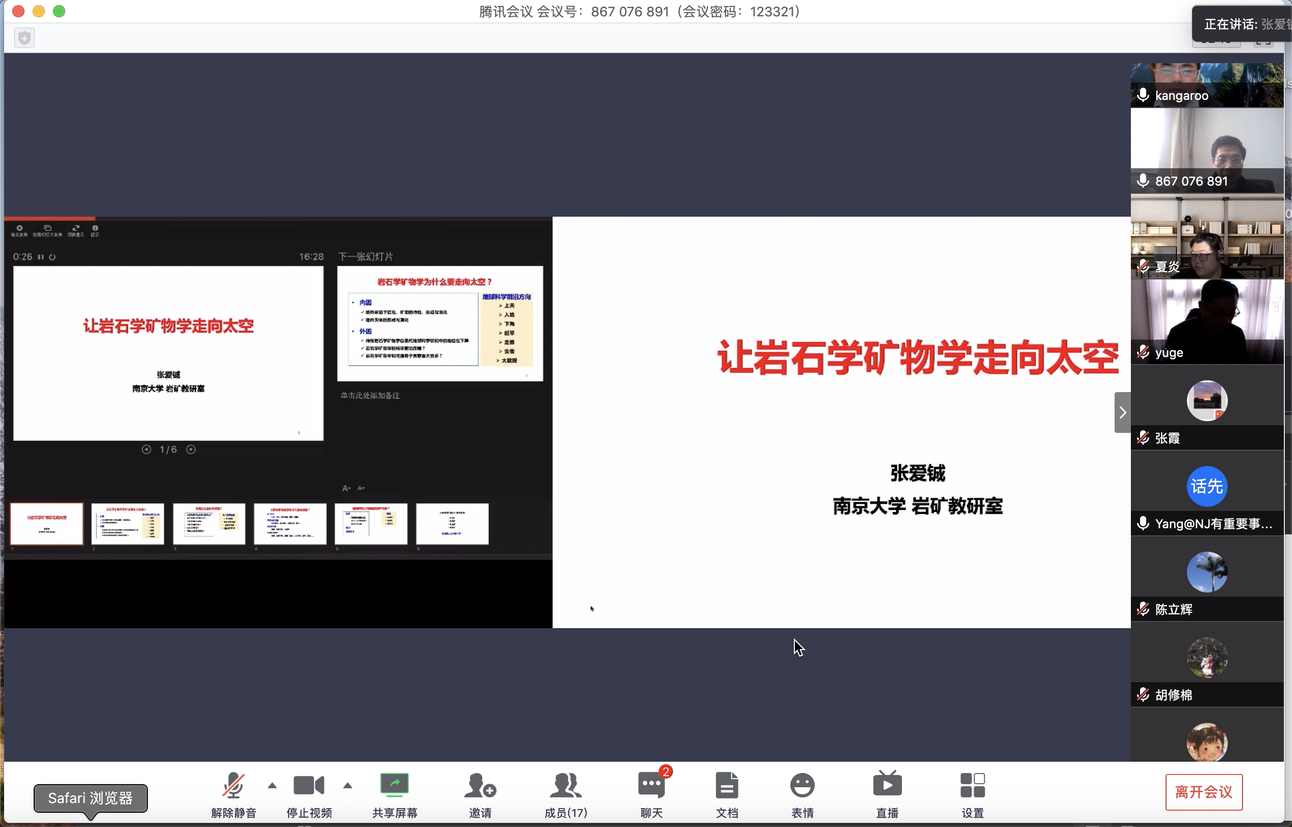 永利304官网唯一第十一次党代会为建设“第一个南大”、推进“双一流建设”指明了方向、明确了目标。为推动党代会精神全面落实,进一步增强广大教师党员在“双一流”建设中的自觉性和责任感,永利304官网唯一岩矿教师支部积极响应学校号召,于3月25日下午通过腾讯会议开展了一次别具深意的“线上组织生活”。