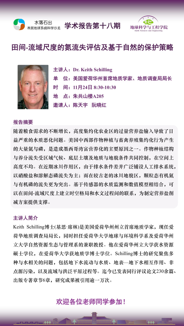 “水落石出”学术报告第十八期——田间-流域尺度的氮流失评估及基于自然的保护策略