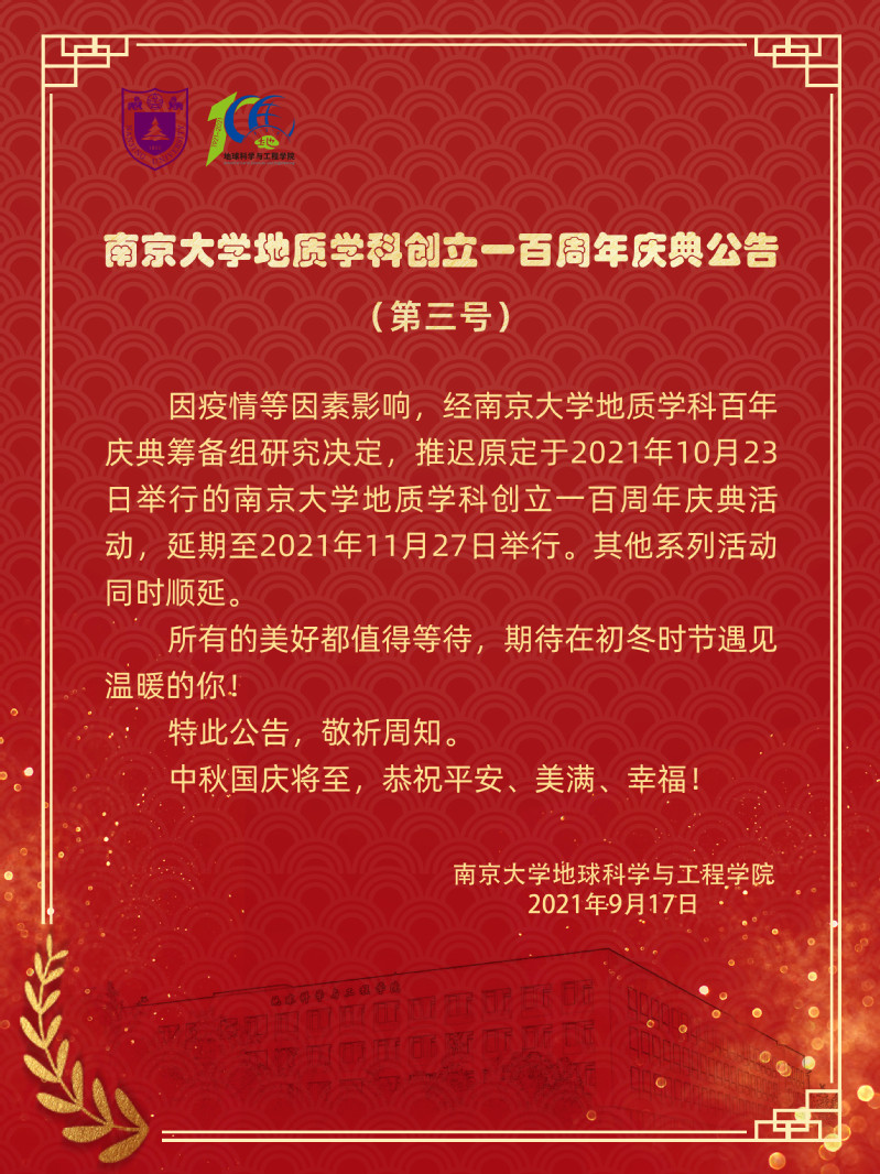 永利304官网唯一地质学科创立一百周年庆典公告(第三号)