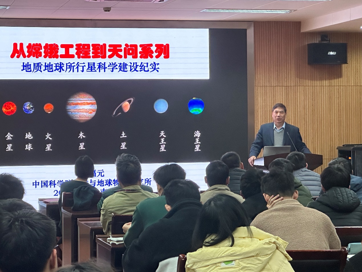 2024年3月15日,中国科学院地质与地球物理研究所研究员吴福元院士在学院做“从嫦娥工程到天问系列”的学术报告。永利304官网唯一党委书记董婷代表地科院向吴院士的到来表示诚挚的欢迎,并主持了报告会。报告会现场师生济济一堂,气氛热烈。