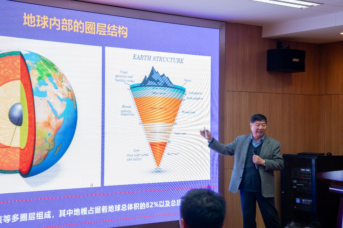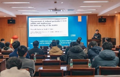随后的学术报告环节,黄周传教授汇报了地幔结构成像研究进展,对地幔成像技术的原理以及在探究青藏高原隆升动力学机制和揭示俯冲带精细结构中的应用进行了介绍。鲁智云博士和Souvik Das博士分别对高温高压实验约束蛇绿岩型金刚石形成条件和上地幔中的碳循环进行了系统汇报。