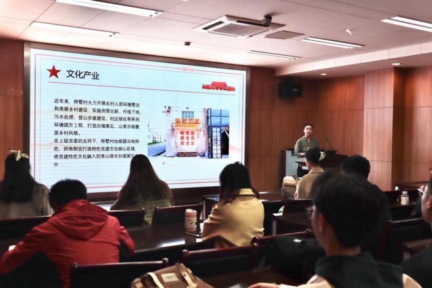 活动伊始,文学院刘子儒同学为大家介绍了本次活动地点——桦墅村的基本情况,并作桦墅村乡村振兴情况领读。
