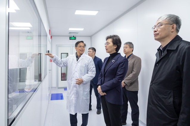 在内生金属矿床成矿机制研究国家重点实验室的离子探针实验室和Nu 1700多接收等离子质谱实验室,重点实验室主任徐夕生教授介绍了实验室的定位和超大型仪器平台建设情况,以及在关键金属成矿作用研究领域发挥的作用。徐缨副省长详细询问了两台超大型仪器的功能开发和取得的创新成果,并对嫦娥五号月壤样品的研究给予了高度关注。
