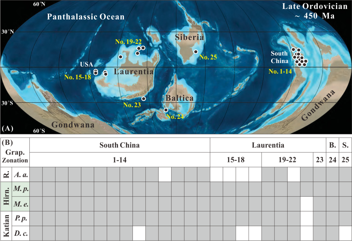 奥陶-志留纪之交是地质历史上一个关键的转折期,其间发生了显生宙第一次生物大灭绝(即奥陶纪末生物大灭绝)、赫南特冰期以及海洋碳同位素正漂移(Hirnantian Isotopic Carbon Excursion,简称HICE,其漂移幅度可达+7‰)等一系列重大地质事件。深入研究这些地质事件的成因机制及其内在联系,对于揭示该时期生物与环境的协同演化规律具有重要意义。