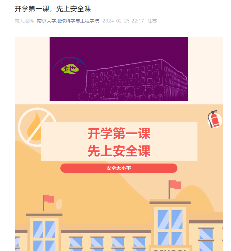 学院自春季新学期起,按照学校《关于进一步加强校园消防安全风险隐患排查及整治工作的通知》要求,进一步对全院的消防安全风险进行排查,并已着手进行楼宇用电线路排查、消防排烟井维修等工作,同时在学院网站、微信公众号、院楼大屏进行相关消防安全宣传。