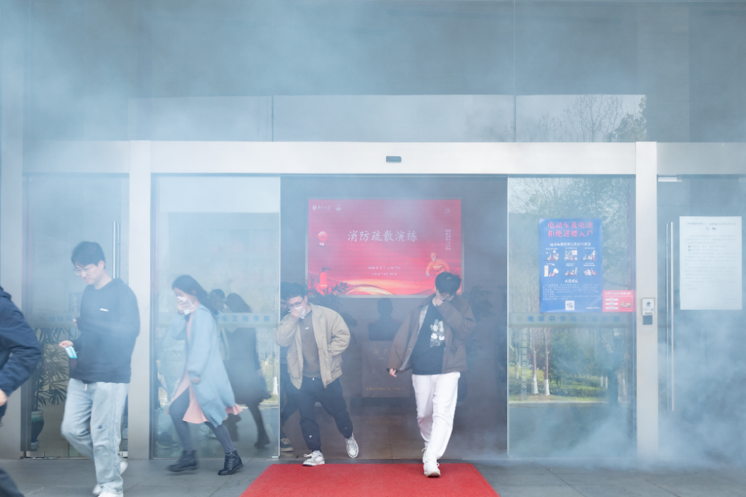 上午10时50分,董婷书记宣布消防疏散演练正式开始。烟雾模拟、急促警铃,随后开启应急广播、启动应急疏散预案,按照“安全第一、就近逃生”的疏散原则,引导楼内师生沿应急疏散安全路线有序撤离。