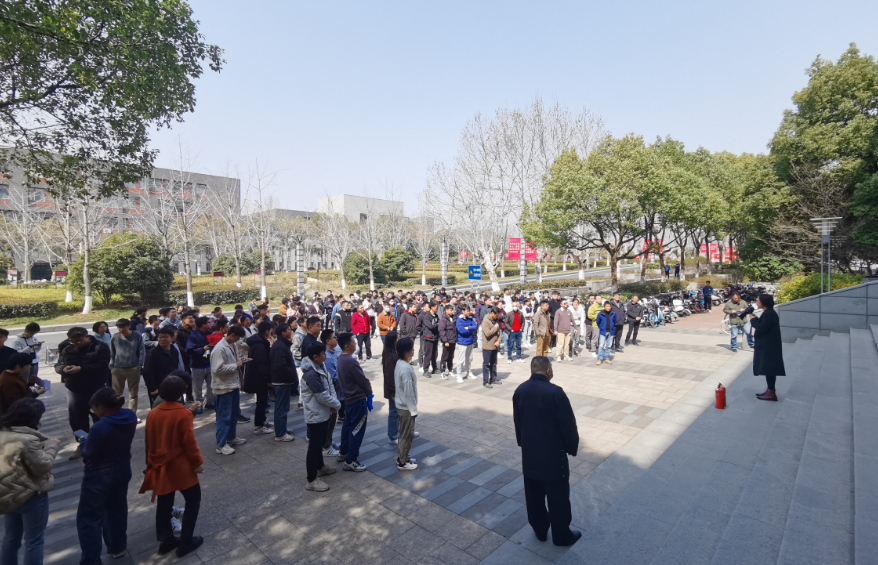 撤离结束后,师生聚集在院楼前的广场,进行此次消防疏散演练总结点评。董婷书记进行宣讲:“本次演练检验了应急联动机制和师生的自救自护意识,希望通过春季消防安全系列活动,进一步增强全体师生的消防安全意识和相关安全技能。上周集中观看了消防逃生公开课,学习了消防逃生的技巧和知识,今天的消防演练也是巩固和检验学习的成果。希望学院广大师生提高认识,在思想上加强重视,把生命安全放在首位,在教学、科研和学习中,在实验室、工作室、教室、宿舍等场所都要注意预防危险和识别隐患,做到知行合一,及时清理整改隐患,保障生命安全。”