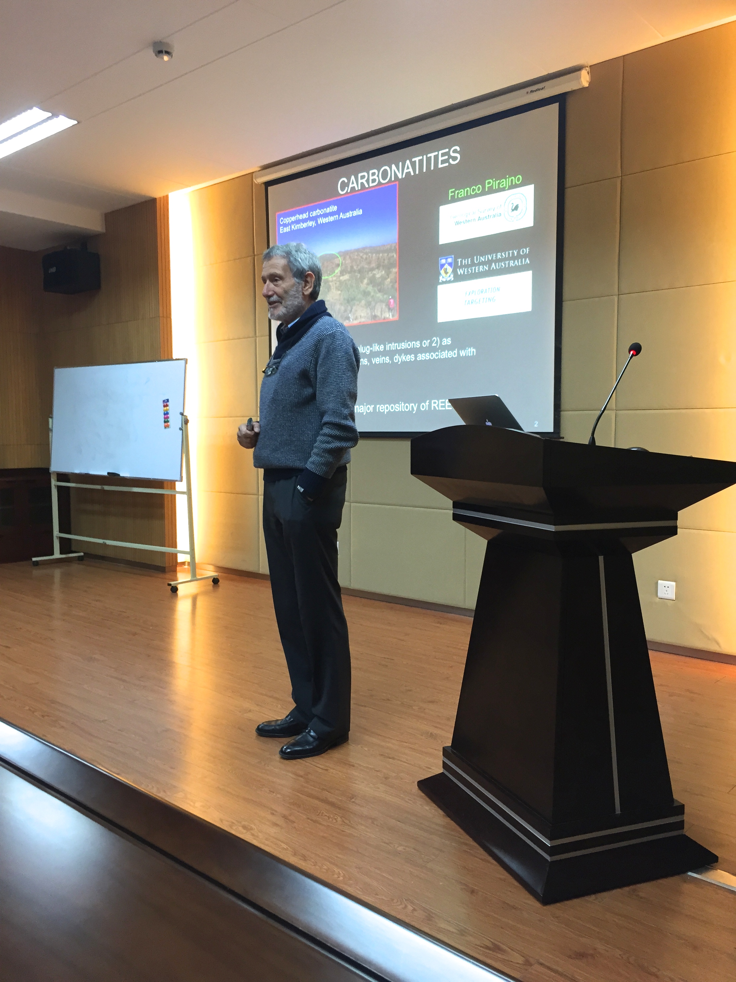 2015年1月16日上午,西澳大利亚地质调查局首席地质师,西澳大学教授Franco Pirajno应内生金属矿床成矿机制研究国家重点实验室邀请来我校访问,并做了题为《Carbonatites: A major repository of REE minerals》的学术报告。报告在永利304官网唯一仙林校区朱共山楼举行,永利官网院长王汝成教授主持并介绍了Pirajno教授的简历和主要学术成就。