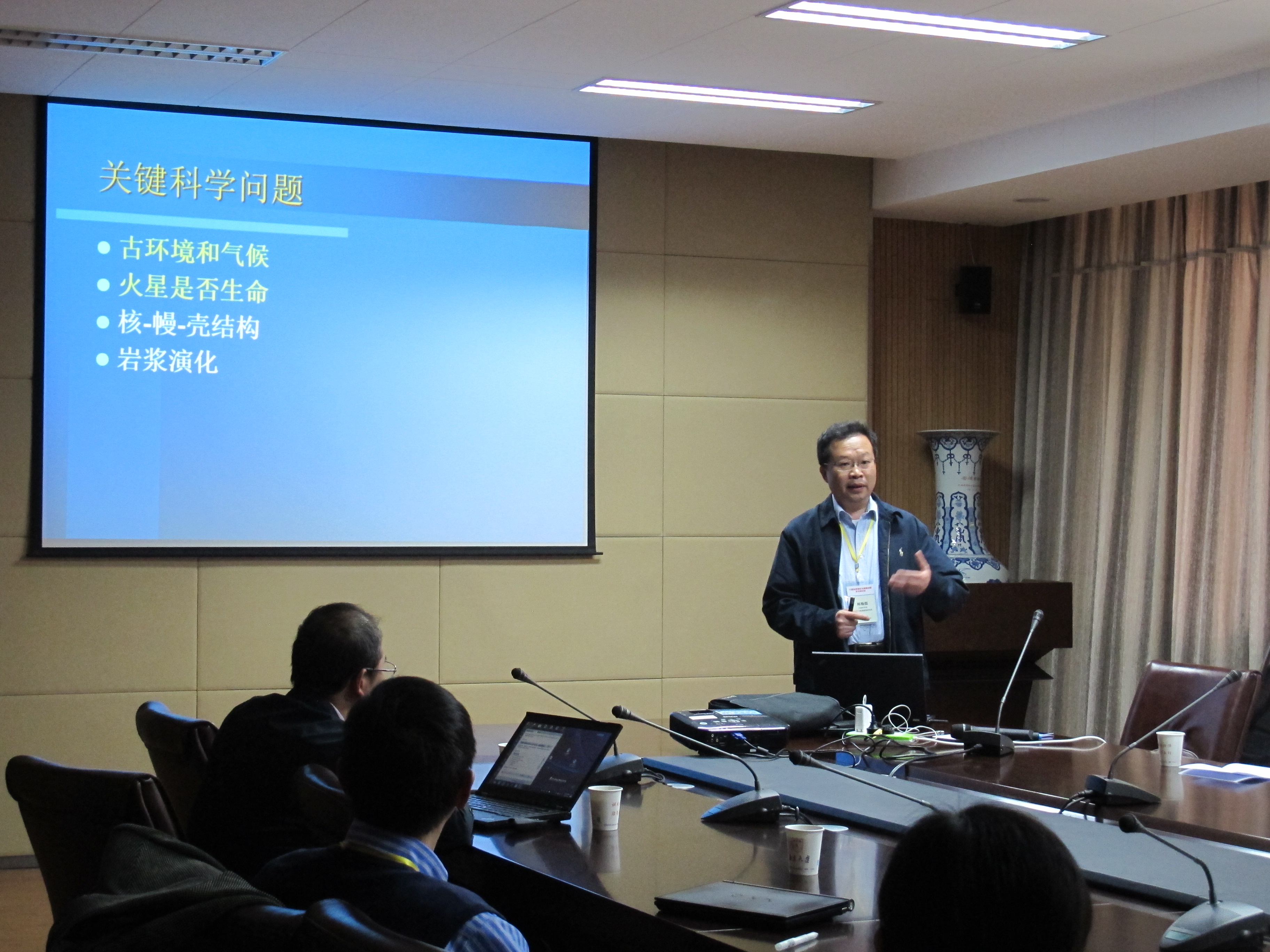 下午的报告主要涉及火星和月球形成与演化过程中的关键科学问题,由张爱铖教授主持。林杨挺研究员的报告主要涉及火星研究的关键科学问题,纳米离子探针分析技术及火星古地下水和有机物等相关的研究进展。肖龙教授回顾了火星探测历史,介绍了火星表面火山活动的形貌特征、分布和时代,并在此基础上讨论了火星早期火山活动的历史。惠鹤九教授分两阶段介绍了月球水的研究历史,同时报道了关于月球早期水的最新研究成果。李雄耀博士通过介绍地球沙尘暴将与会代表的注意力自然地引到行星表面的尘埃风暴,并详细介绍了月球尘埃环境、特性和尘埃运移机制等重要问题。论坛最后一个报告者是周琴博士,她介绍了最近关于内太阳系撞击历史的模型,并通过月球陨石中锆石和磷酸盐矿物的离子探针年龄学研究,讨论了月球早期多次大规模撞击事件的可能性,引起了与会代表热烈的讨论。