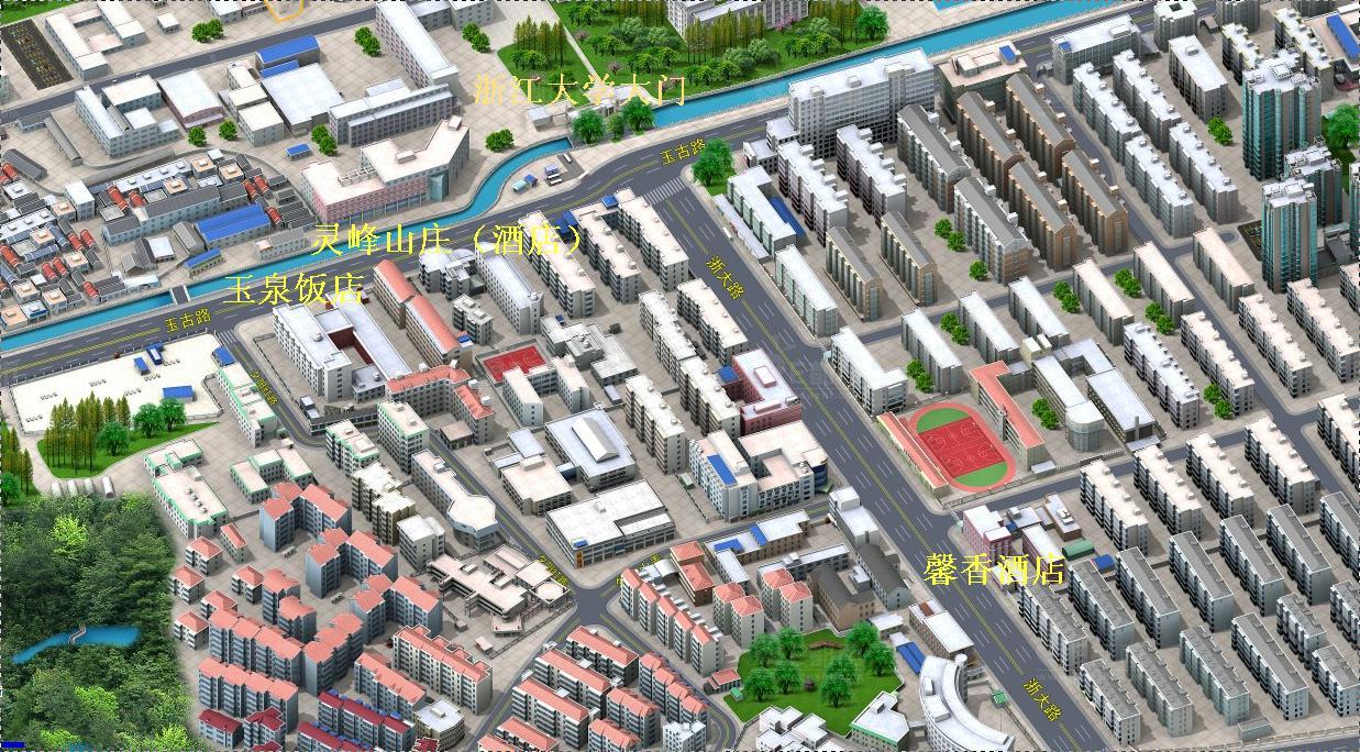 住宿安排:本次会议为参会代表提供三个住宿酒店。(1)玉泉饭店(双人间共40间,450元/间,单人大床房共20间,450元/间),(2)灵峰山庄(双人间共20间,340元/间,单人大床房共15间,380元/间),(3)馨香酒店(双人间A共15间,128元/间,双人间B共 20间,168元/间)。(酒店具体位置参见附图)