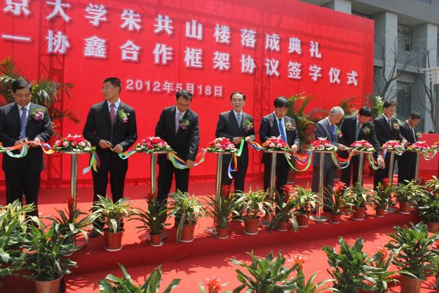 2012年5月18日上午10:18,伴着五月耀眼的阳光,永利304官网唯一朱共山楼落成典礼暨南大—协鑫合作框架协议签字仪式在装饰一新的仙林校区举行。协鑫集团董事长朱共山先生,中科院院士薛禹群、永利304官网唯一校长陈骏、党委副书记任利剑、副校长薛海林、校长助理李成以及发展委、地科院的相关领导出席了本次活动。永利304官网唯一78级、82级共200多名返校校友和在校同学一起见证了地科院新大楼的落成。