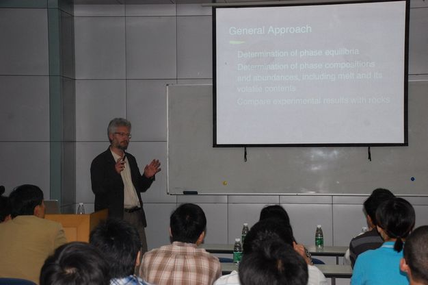 Bruno Scaillet教授为法国奥尔良大学地球科学研究所所长,担任国际《火山地质与地热研究杂志》(Journal of Volcanology and Geothermal Research)编委。是美国、欧盟、英国、瑞士和法国自然基金会的评审专家。Bruno Scaillet教授介绍了壳源花岗岩的实验特征,着重描述了其在高压相平衡条件下的粘度和电导率的测量方法,以及如何将其运用到喜马拉雅-青藏高原造山带的研究实例中。在传统的研究方法基础上提出了新的想法和思考。