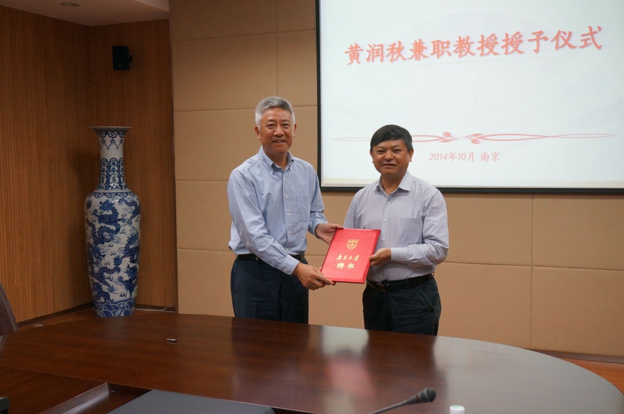 10月12日,国家杰出青年基金获得者,成都理工大学副校长黄润秋教授受聘为永利304官网唯一兼职教授。授聘仪式在南大仙林校区朱共山楼举行,永利304官网唯一潘毅副校长出席了授聘仪式并向黄教授颁发聘书。永利304官网唯一王汝成院长主持了授聘仪式,施斌教授介绍了黄润秋教授的工作成就。