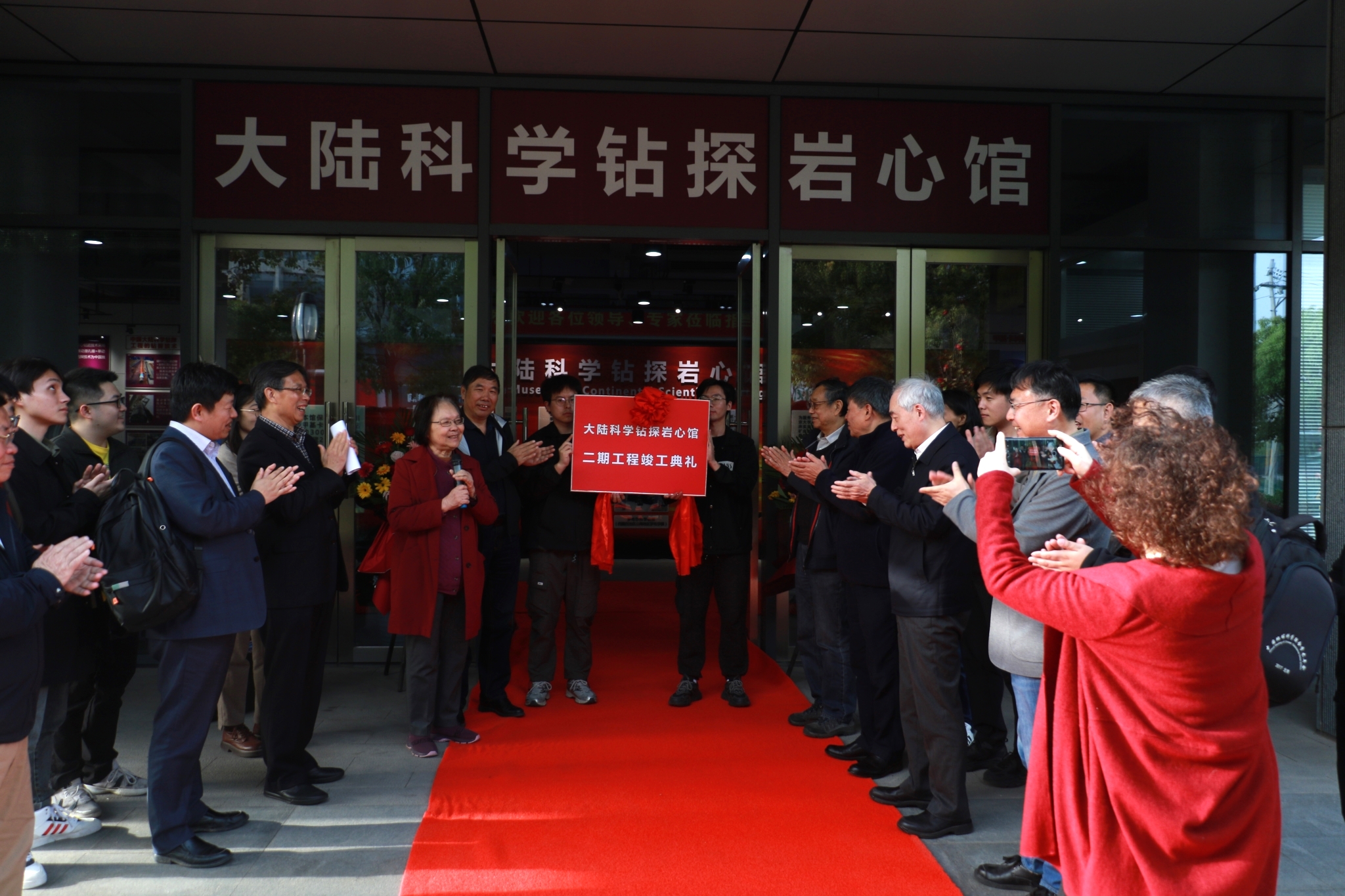 2023年4月12日,由永利304官网唯一支持建设的江苏省地质学会科普基地——“大陆科学钻探岩心馆”二期工程竣工典礼揭牌仪式在永利304官网唯一科技园举行。仪式由永利官网许志琴院士主持。中国科学院地质与地球物理研究所吴福元院士和翟明国院士、浙江大学杨树峰院士、永利304官网唯一陈骏院士共同为“大陆科学钻探岩心馆”揭牌。