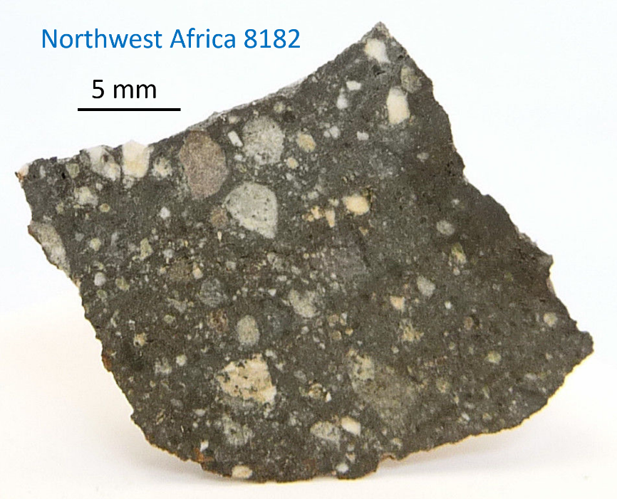 最近,永利304官网唯一张爱铖教授课题组发表了一篇文章,报道一块经历撞击作用的月球陨石(Northwest Africa 8182,简称NWA 8182,一块在西北非地区搜集到的陨石,8182代表国际陨石学会批准的第8182块西北非陨石,图2)中含有大量金属铅。他们提出这些金属铅是因为天体撞击作用从矿物中释放出来的,会对目标矿物的U-Pb同位素定年产生重要影响。