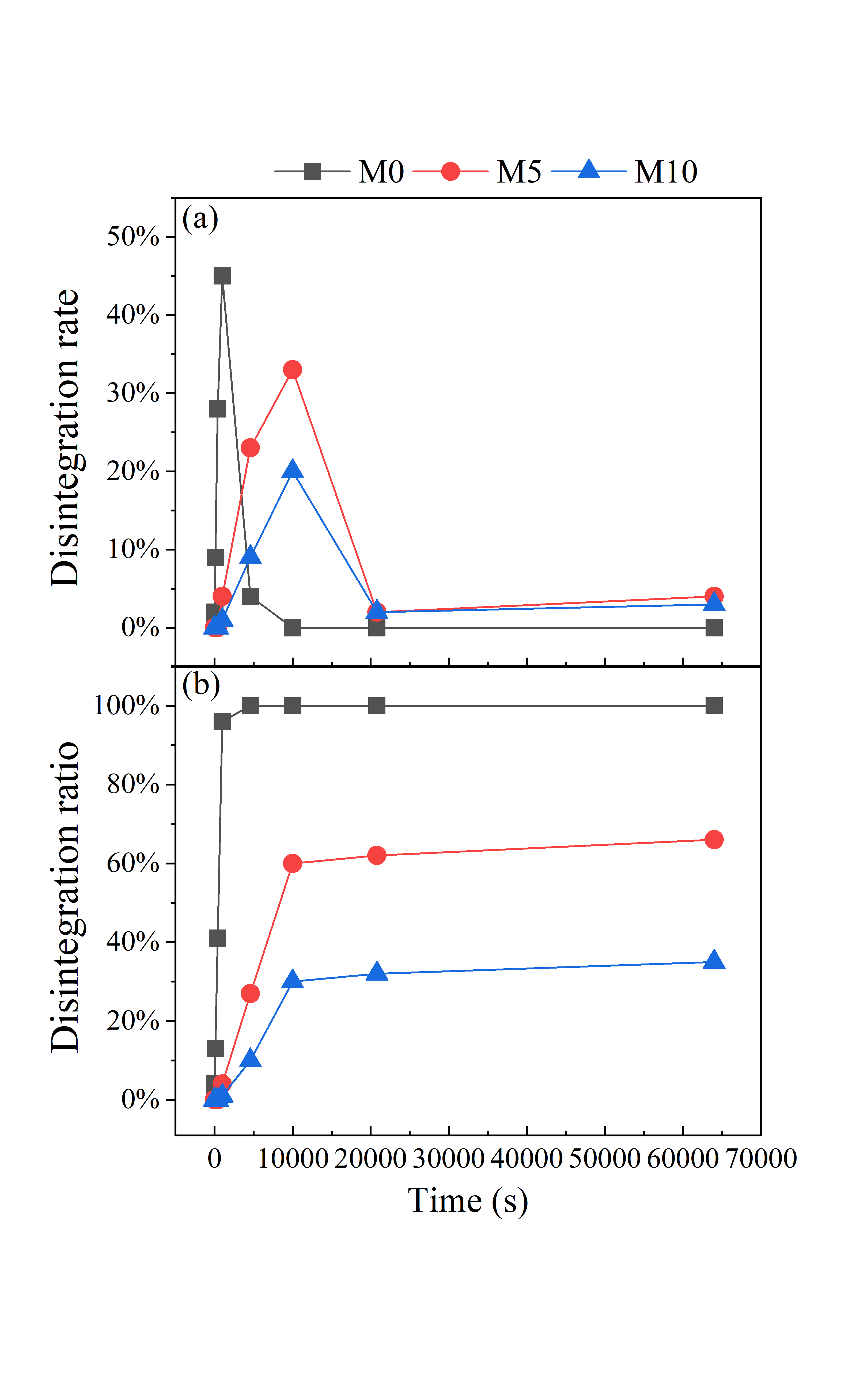 图5活性氧化镁治理前后铅污染土的崩解速率和崩解率