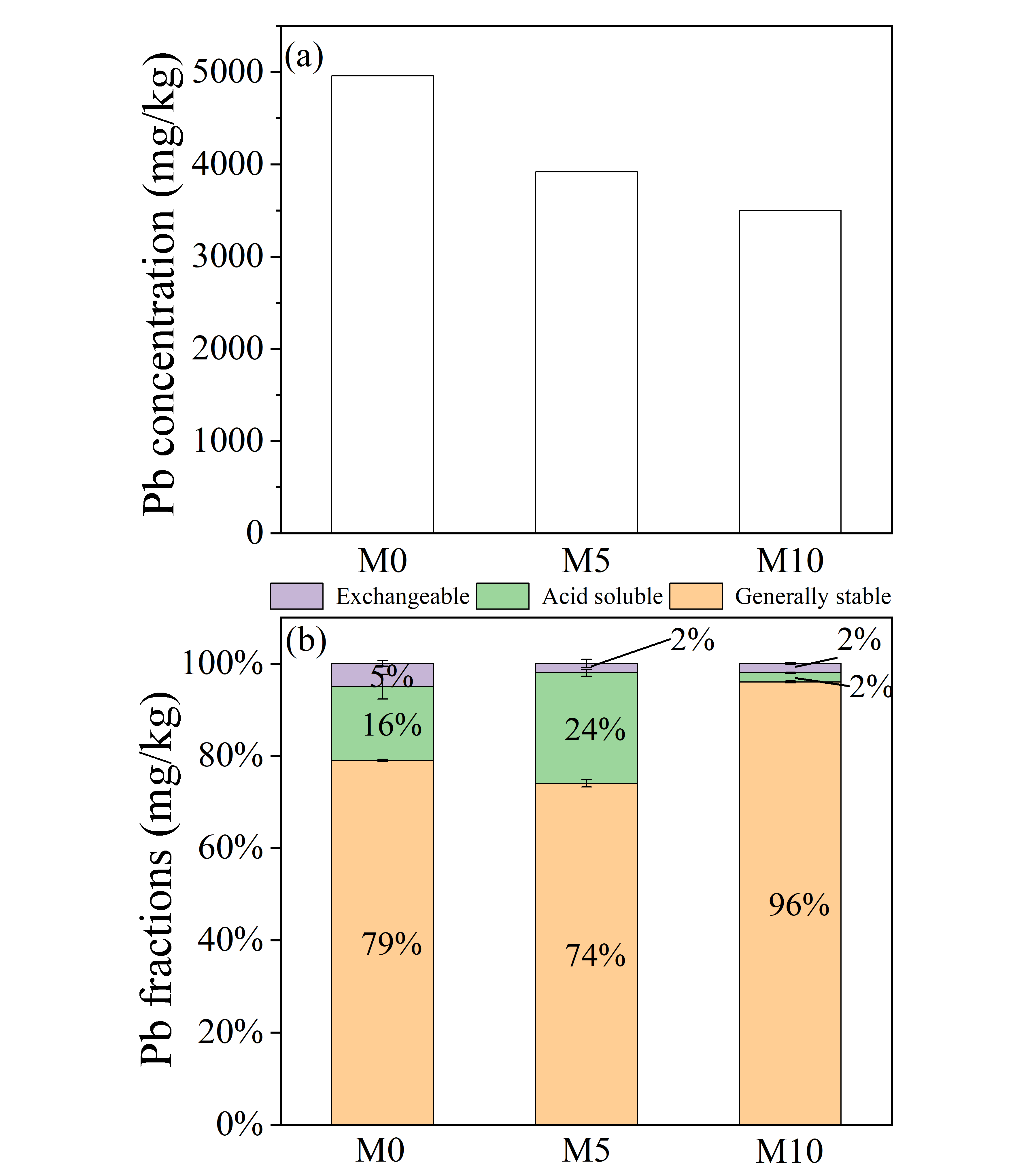4.5%活性氧化镁掺量可实现铅污染下蜀土的有效治理,10%掺量可实现铅的近零迁移,本研究从化学稳定与物理固化协同作用的角度,为重金属污染土治理提供了新思路。