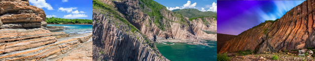 (1)香港世界地质公园(联合国教科文组织名录):中生代火山活动遗迹与构造运动典型剖面;国际地学研究热点区域,包含多种海蚀地貌与地质构造。