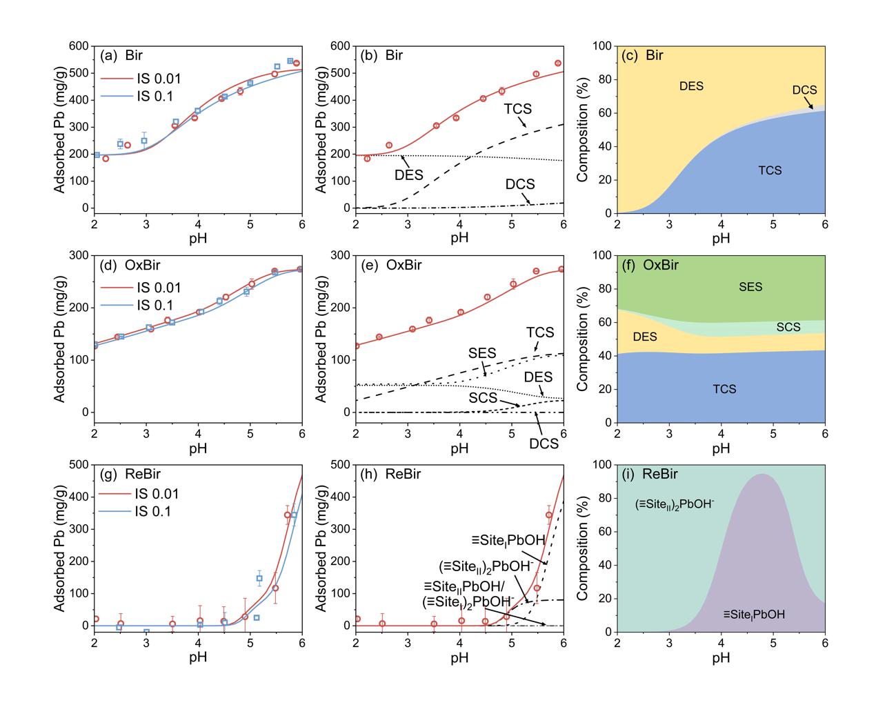 图5 Pb(II)在水钠锰矿上的吸附边及表面络合模型预测的Pb(II)形态分布